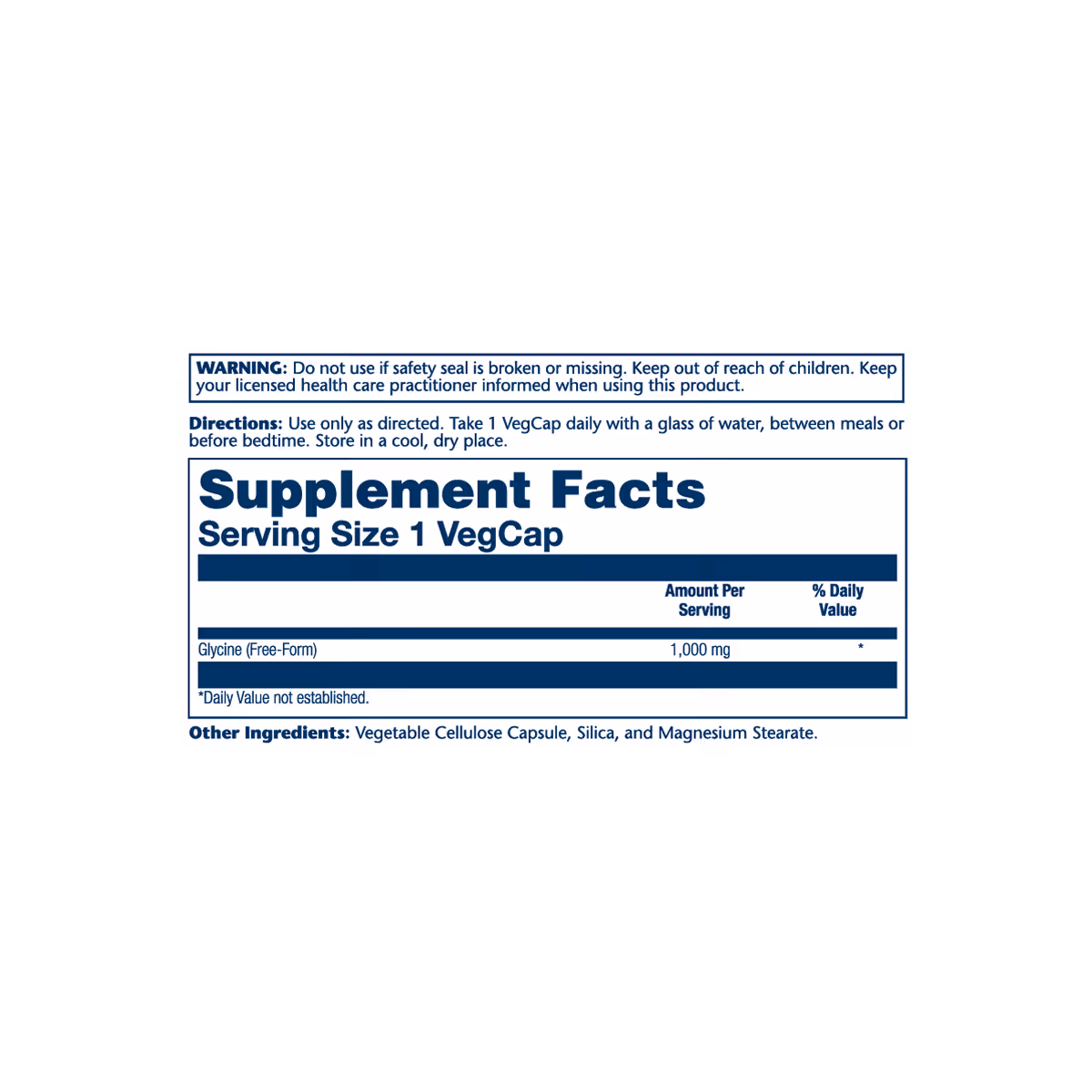 Glycine (Free-Form), Vegetable Cellulose Capsule, Silica, and Magnesium Stearate.